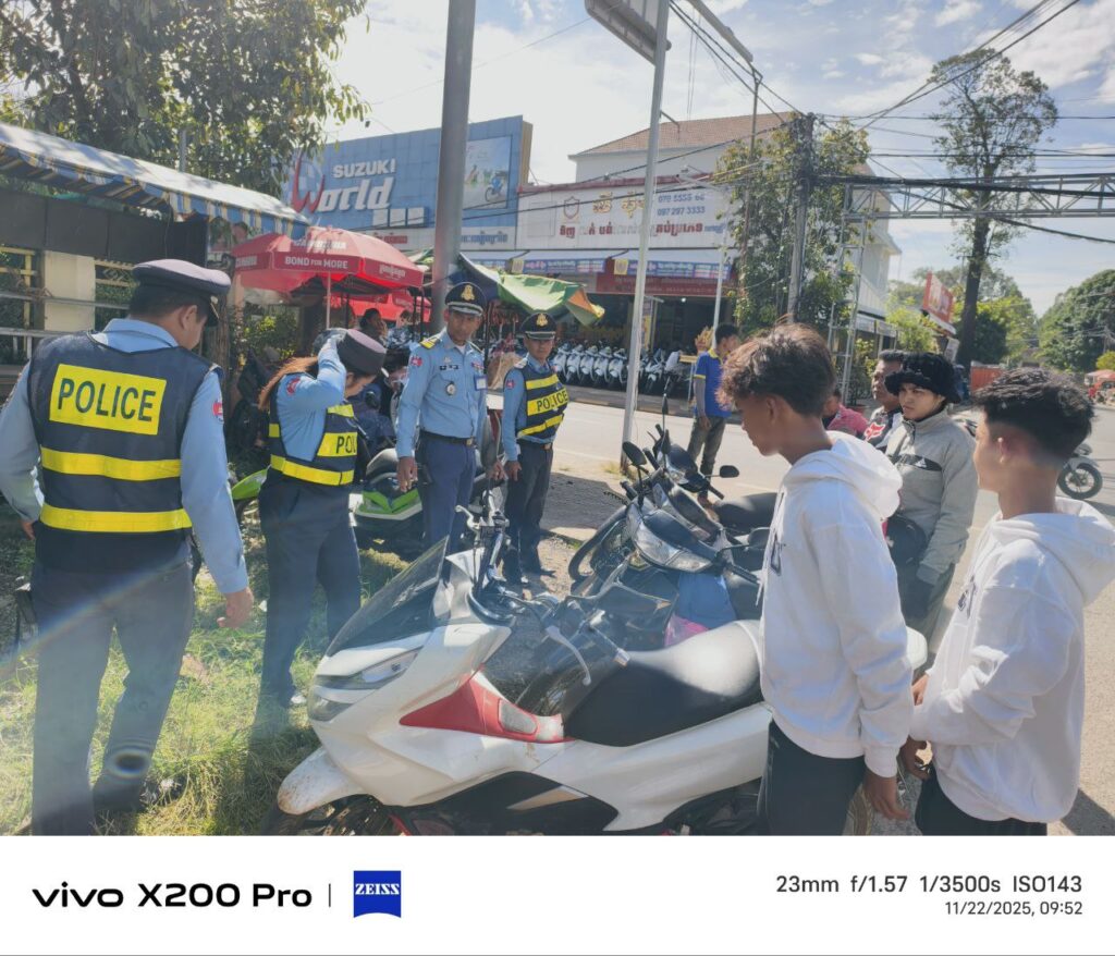 កំពង់ឆ្នាំង៖កម្លាំងនគរបាលជំនាញខេត្តកំពង់ឆ្នាំងដឹកនាំដោយលោកវីរសេនីយ៍ត្រី ទឹម សំបូរ នាយការិយាល័យ​ចរាចរណ៍​ផ្លូវគោកថ្ងៃទី២២ ខែវិច្ឆិកា ឆ្នាំ២០២៥ បានប្រើប្រាស់កម្លាំងឈរជើងនៅចំណុចគោលដៅមួយចំនួននៃភូមិទី ១ សង្កាត់ខ្សាម ក្រុងកំពង់ឆ្នាំង ។