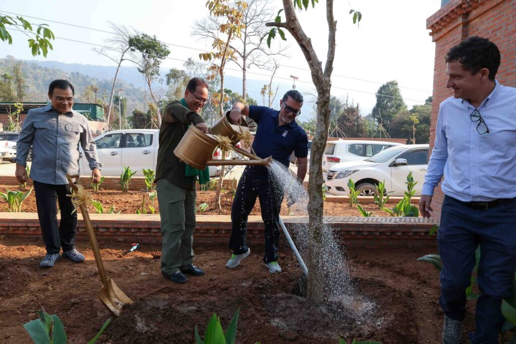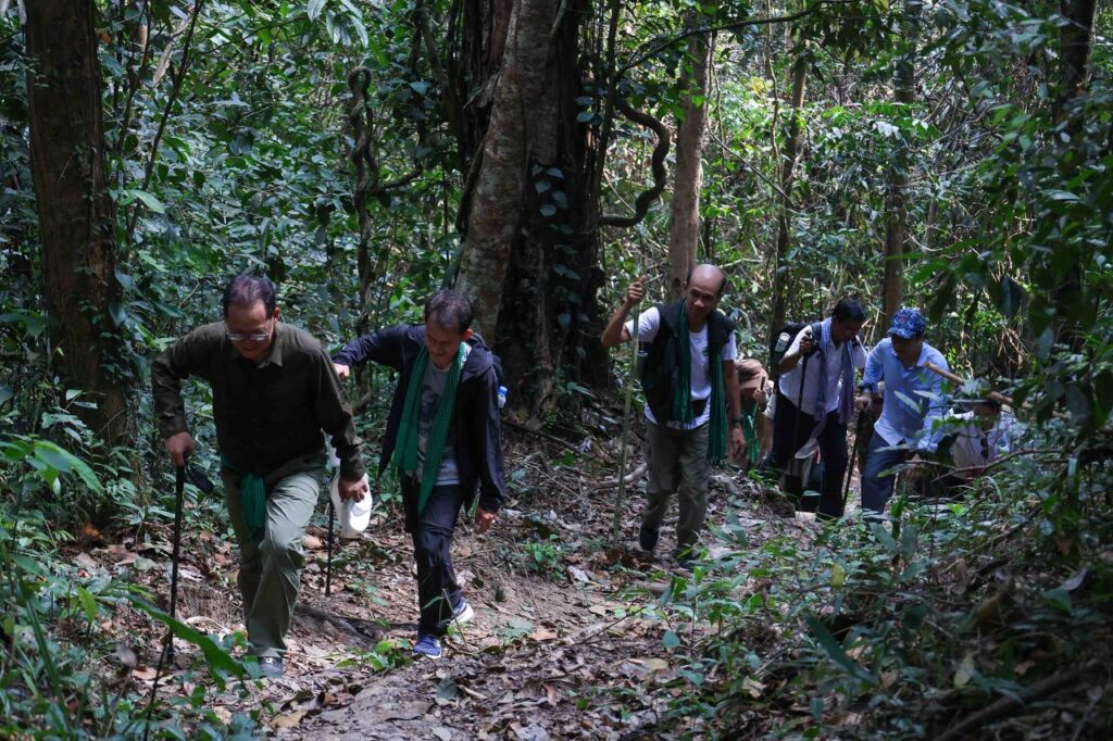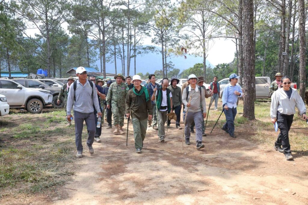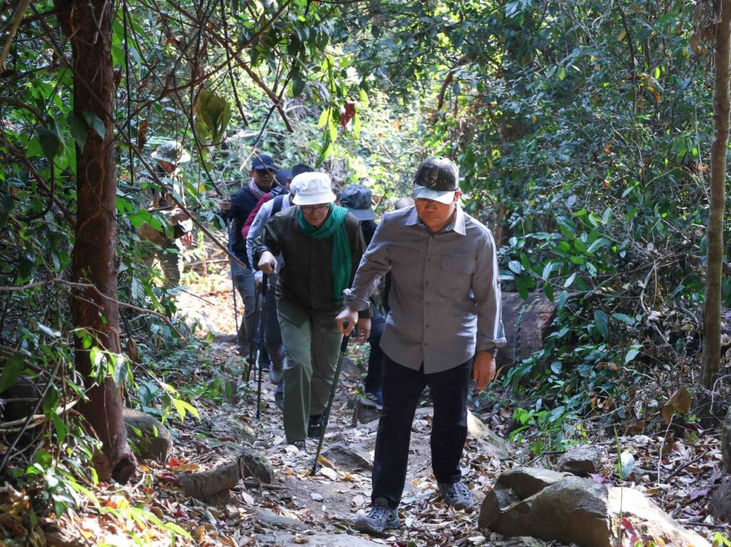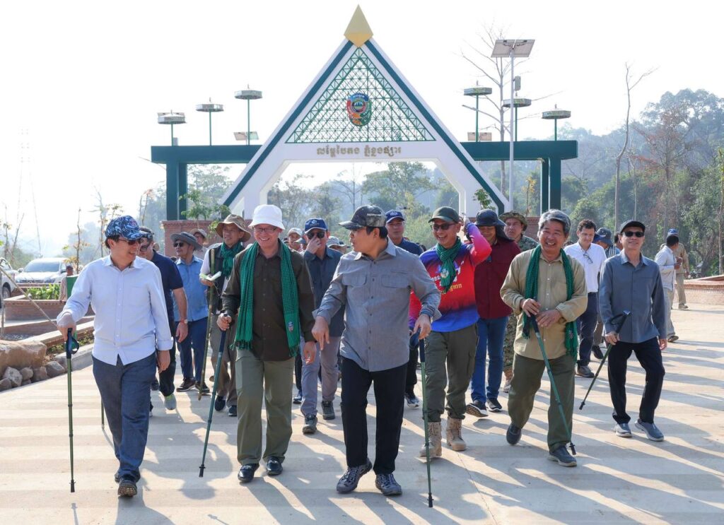 ប្រតិភូបានអញ្ជើញចូលរួមដាំដើឈើ«សន្តិភាព» នៅក្លោងទ្វាចូល ដំណាក់ដំរី ចំណុចជើងភ្នំ មុនឡើងទៅលើភ្នំខ្នងផ្សារ។ ឯកឧត្តមរដ្ឋមន្រ្តីទាំងពីរ រួមជាមួយអ្នកចូលរួមទាំងអស់ បានធ្វើដំណើរឡើងភ្នំដោយថ្មើជើង ចាប់ពីដំណាក់ដំរី ឆ្លងកាត់ដំណាក់នីមួយៗ ដែលបានសាងសង់រួចរាល់ ជាមួយកន្លែងអង្គុយសម្រាកលម្ហែដ៏ស្រស់ស្អាត អ្នកទេសចរណ៍អាចស្រូបយកខ្យល់អាកាសល្អបរិសុទ្ធ គយគន់ទេសភាពធម្មជាតិ រុក្ខជាតិ ផ្កាព្រៃជាដើម។ ជាមួយគ្នានេះ គម្រោងបានដាក់ស្លាកព័ត៌មាន ដែលបង្ហាញពីចម្ងាយផ្លូវ និងសារៈប្រយោជន៍នៃការឡើងភ្នំចំពោះសុខភាព នៅតាមកន្លែងសម្រាកនីមួយៗថែមទៀត។