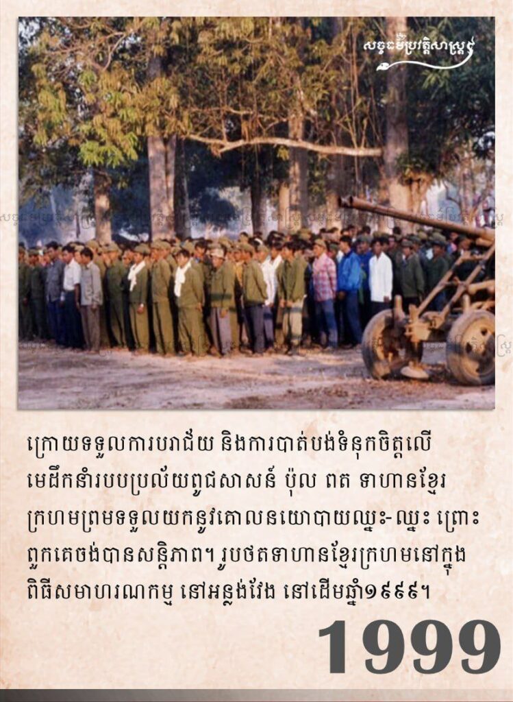 ក្រោយទទួលរងការបរាជ័យ និងការបាត់បង់ទំនុកចិត្តលើមេដឹកនាំរបបប្រល័យពូជសាសន៍ ប៉ុលពត ទាហានខ្មែរក្រហមព្រមទទួលយកនូវគោលនយោបាយឈ្នះ-ឈ្នះ ព្រោះពួកគេស្អប់សង្គ្រាម ហើយចង់បានសន្តិភាព