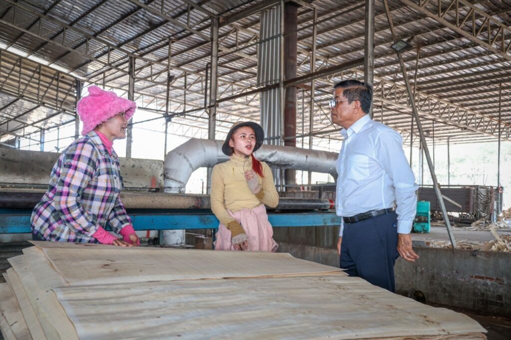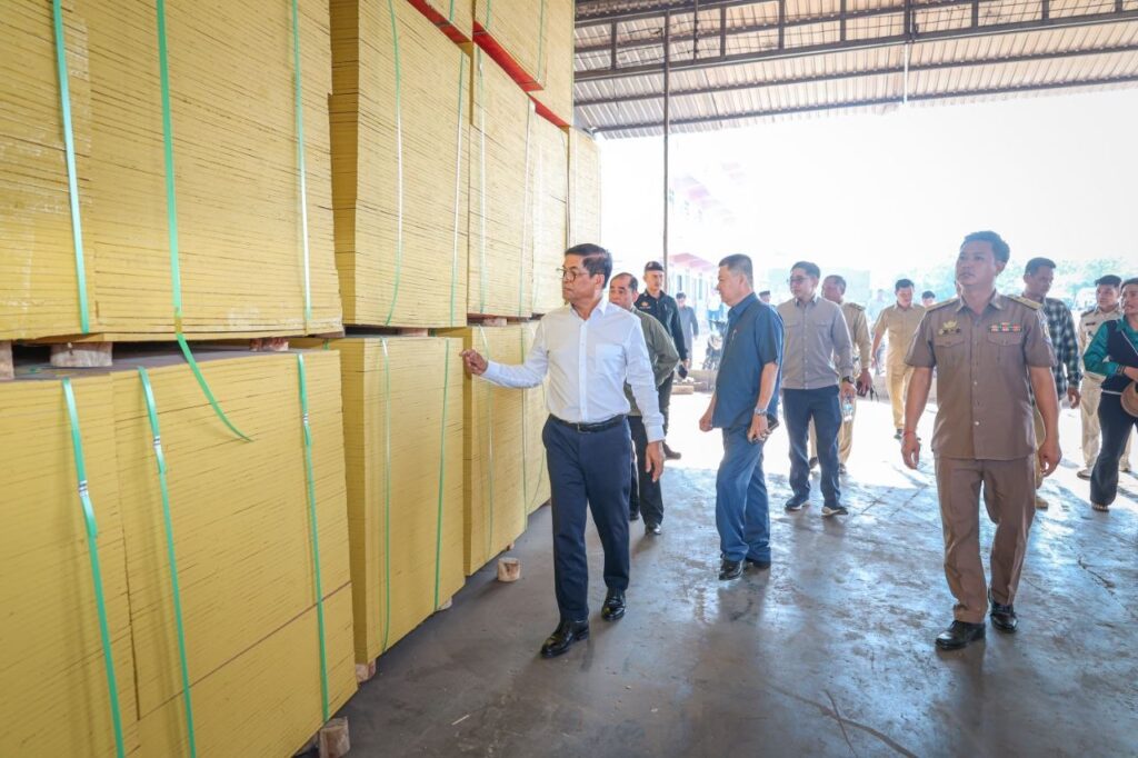 កាលពីថ្ងៃទី២៥ ខែមីនាឆ្នាំ២៦ឯកឧត្តម ញ៉ែម សំអឿន អភិបាល​ខេត្តរតនគិរី និងមន្រ្តីជំនាញបានអញ្ជើញពិនិត្យ​ខ្សែច្រវាក់​ផលិតកម្ម​សហគ្រាសផលិតក្តារបន្ទះ កៅសីង ប្លាយវូត(GUOXING PLYWOOD)។ សហគ្រាសនេះមានទីតាំងនៅស្រុកអូរជុំ ដោយយកដើម​កៅស៊ូ និងដើមស្វាយចន្ទីដែលចាស់ៗហួសអាយុកាលផ្តល់ផលមក​កែច្នៃជាក្តារបន្ទះដែលមានគុណភាពខ្ពស់។ ក្នុងមួយថ្ងៃសហគ្រាស​កៅស៊ីង អាចផលិតបានមួយពាន់សន្លឹកផ្គត់ផ្គង់ទីផ្សារនៅភ្នំពេញ។