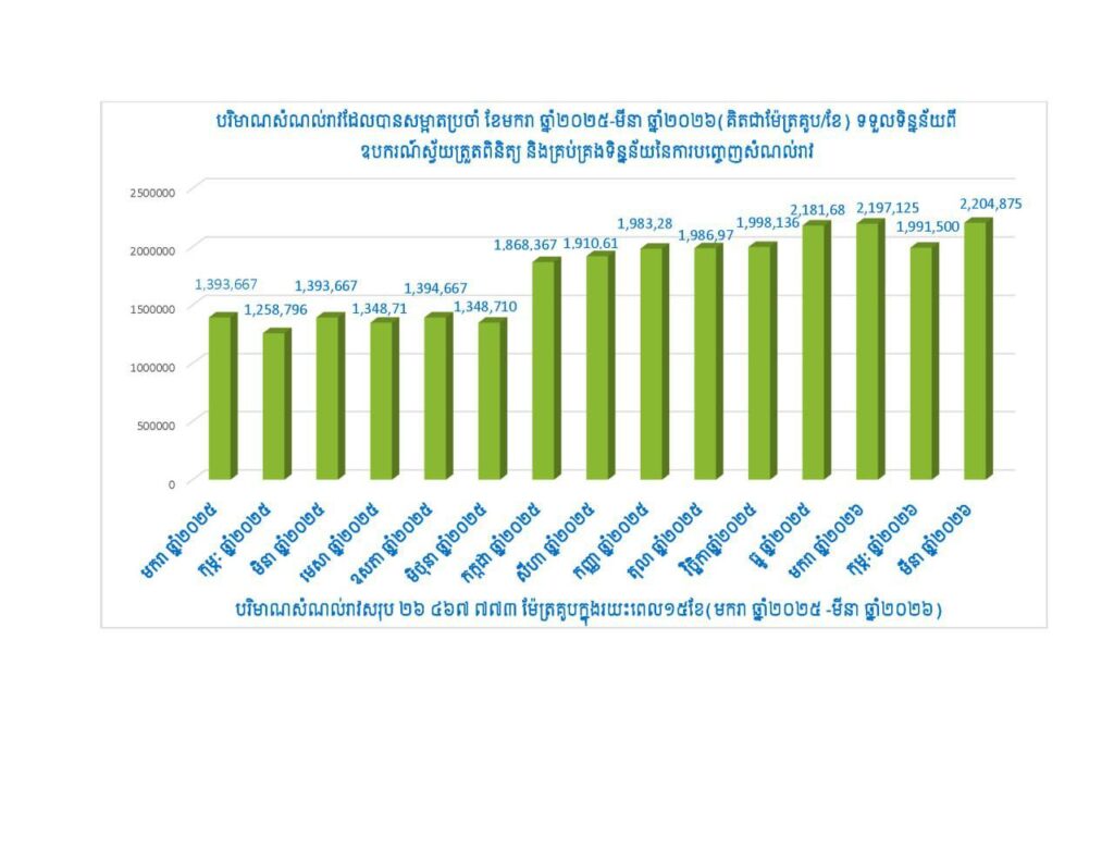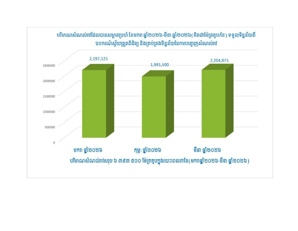 ភ្នំពេញ៖ គិតចាប់ពីខែមករាដល់ខែមីនាឆ្នាំ២០២៦នេះ ក្រសួងបរិស្ថានបាន​ជួយទប់ស្កាត់ទឹកកខ្វក់ចំនួនជាង ៦,៣លានម៉ែត្រគូប មិនឱ្យហូរចូលក្នុង​ប្រភពទឹកធម្មជាតិ ខណៈពេញមួយឆ្នាំ២០២៥ កន្លងទៅទប់ស្កាត់បានជា​២០លានម៉ែត្រគូប។