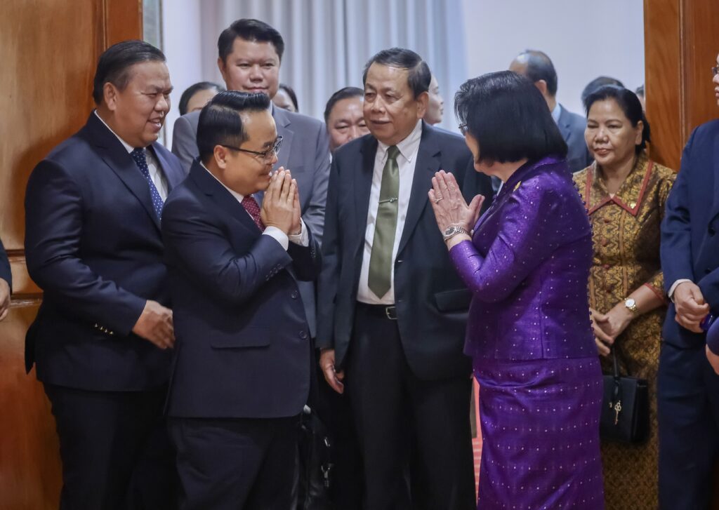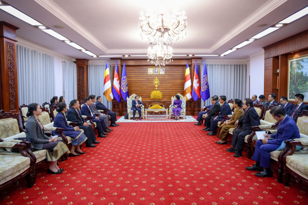 ឯកឧត្តមប្រធានគណៈប្រតិភូឡាវ បានថ្លែងអំណរគុណយ៉ាងជ្រាលជ្រៅជូនសម្តេចប្រធានរដ្ឋសភា ដែលបានអនុញ្ញាតឲ្យគណៈប្រតិភូចូលជួបសម្តែងការគួរសម និងស្វែងយល់ការងារក្នុងឱកាសនេះ។ ឯកឧត្តម វៀងថាវិសុន ទេពផាច័ន្ទ បានវាយតម្លៃខ្ពស់ និងកោតសរសើរចំពោះវឌ្ឍភាព និងការីកចម្រើនរបស់កម្ពុជា លើគ្រប់វិស័យយ៉ាងឆាប់រហ័ស ក្នុងនោះរួមមាន អាកាសយានដ្ឋានអន្តរជាតិតេជោ ហេដ្ឋារចនាសម្ព័ន្ធសង្គម សំណង់អគាររដ្ឋ និងឯកជន ហើយនៅចុងខែមេសានេះ កម្ពុជានឹងសម្ពោធដំណាក់កាលទី២ នៃការសាងសង់ព្រែកជីកហ្វូណនតេជោ ដែលជាមធ្យោបាយដឹកជញ្ជូនដ៏មានសក្តានុពលបន្ថែមទៀតរបស់កម្ពុជា។