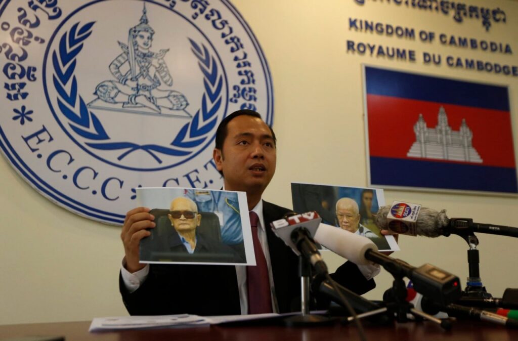 រូបភាពនេះ ថតនៅខែវិច្ឆិកា ឆ្នាំ២០១៨ ក្នុងនាមប្រធានផ្នែកកិច្ចការសាធារណៈនៃអង្គជំនុំជម្រះវិសាមញ្ញក្នុងតុលាការកម្ពុជា​ដែលជាតុលាការជាតិដោយមានការចូលរួមពីអង្គការសហប្រជាជាតិ ធ្វើសន្និសីទសារព័ត៌មានដើម្បីប្រកាសសាលក្រមលើ​សំណុំរឿង ០០២/០២ ដែលអង្គជំនុំជម្រះសាលាដំបូងកាត់ទោសអតីតមេដឹកនាំខ្មែរក្រហម នួន ជា ប្រធានសភាតំណាង​ប្រជាជន និងខៀវ សំផន អតីតប្រធានគណៈប្រធានរដ្ឋនៃរបបកម្ពុជាប្រជាធិបតេយ្យ (ខ្មែរក្រហម) ឱ្យជាប់ពន្ធនាគារមួយជីវិត​លើបទចោទឧក្រិដ្ឋកម្មប្រឆាំងនឹងមនុស្សជាតិ ឧក្រិដ្ឋកម្មសង្គ្រាម និងឧក្រិដ្ឋកម្មប្រល័យពូជសាសន៍។ ក្នុងសំណុំរឿង ០០២/០១ អតីតមេដឹកនាំទាំងពីរក៏ត្រូវបានកាត់ទោសឱ្យជាប់ពន្ធនាគារមួយជីវិតដែរពីបទឧក្រិដ្ឋកម្មប្រឆាំងនឹងមនុស្សជាតិដែលមានអង្គហេតុនៃការជម្លៀសប្រជាជនដោយបង្ខំចេញពីភ្នំពេញនៅថ្ងៃទី១៧ មេសាផងដែរ។