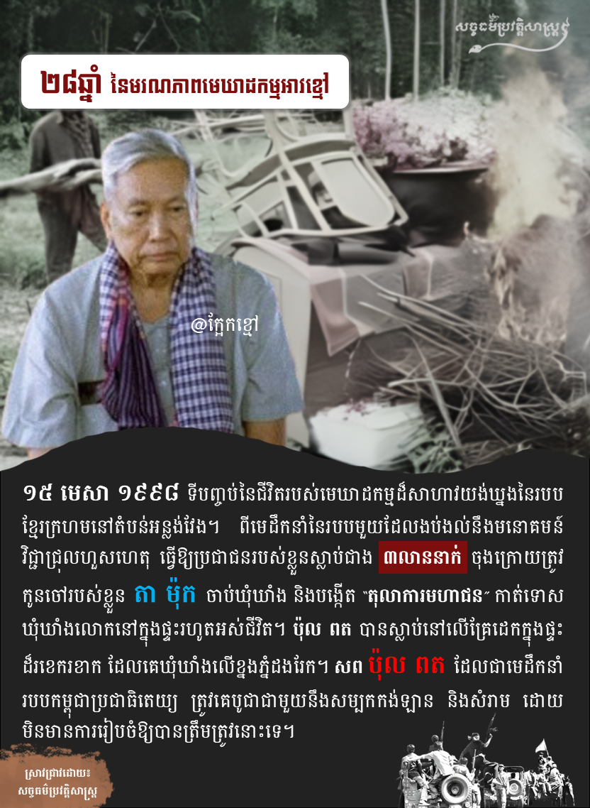 ១៥ មេសា ១៩៩៨ ទីបញ្ចប់នៃជីវិតរបស់មេឃាដកម្មដ៏សាហាវយង់ឃ្នងនៃរបប