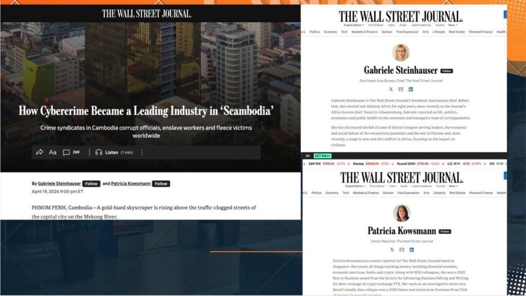 ក្នុងរយៈពេលប៉ុន្មានថ្ងៃចុងក្រោយនេះ អ្នកប្រើប្រាស់បណ្ដាញសង្គម និងមហាជនកម្ពុជាជាច្រើន បានសម្តែងការមិនពេញចិត្ត និងប្រតិកម្មយ៉ាងខ្លាំងក្លា ចំពោះសារព័ត៌មានដ៏ល្បីរបស់សហរដ្ឋអាមេរិកគឺ The Wall Street Journal ដែលបានប្រើប្រាស់ពាក្យ “Scambodia” សំដៅលើកម្ពុជា នៅក្នុងអត្ថបទមួយពាក់ព័ន្ធបញ្ហាឆបោកតាមប្រព័ន្ធបច្ចេកវិទ្យា Online Scams។