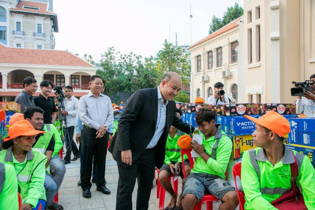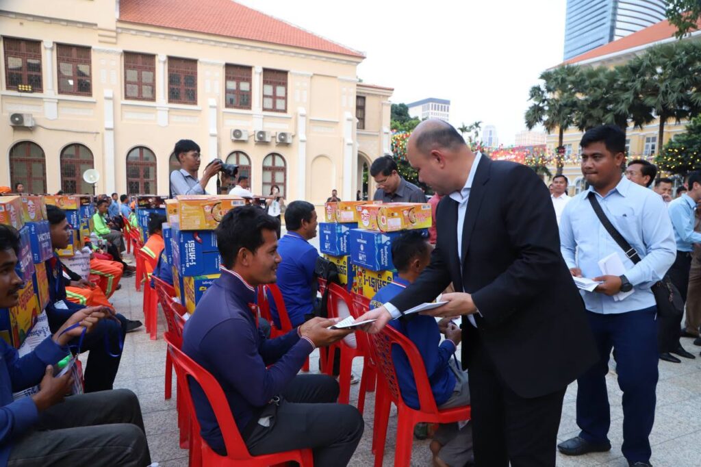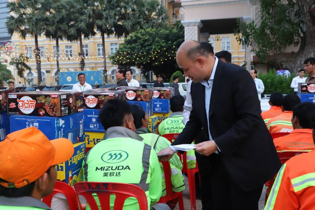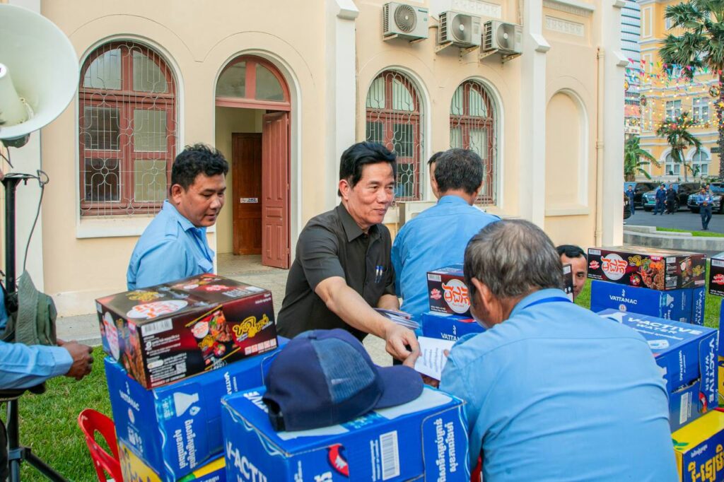 បុគ្គលិកសម្អាតអនាម័យ និងប្រជាការពារ ដែលបានប្រតិបត្តិការផ្ទាល់ បោសសម្អាតអនាម័យក្នុងព្រឹត្តិការណ៍នគរសង្ក្រាន្ត ឆ្នាំ២០២៦នៅរាជធានីភ្នំពេញចំនួន ៧០៦នាក់ ទទួលបានអំណោយជាថវិកា និងគ្រឿងឧបភោគបរិភោគ ក្រោមការរៀបចំរបស់សហភាពសហព័ន្ធយុវជនកម្ពុជាជាមួយរដ្ឋបាលរាជធានីភ្នំពេញ។