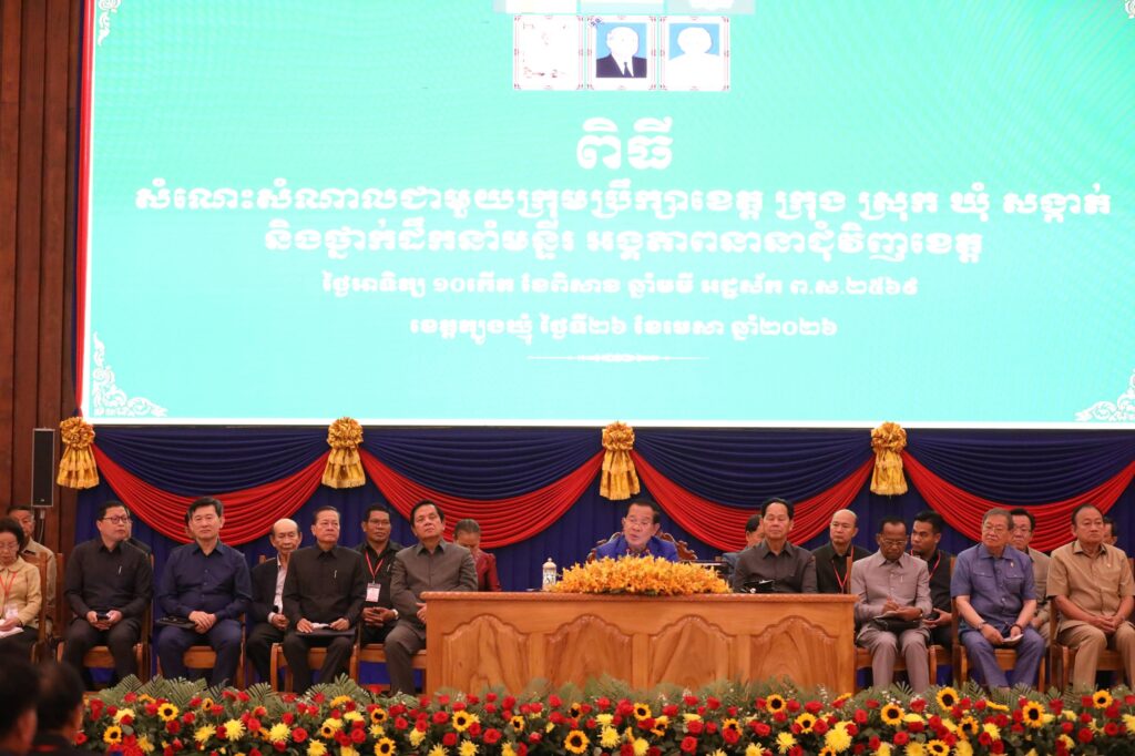 មានប្រសាសន៍កាលព្រឹកថ្ងៃអាទិត្យទី២៦ ខែមេសា ឆ្នាំ២០២៦ នៅខេត្តត្បូងឃ្មុំសម្តេចអគ្គមហាសេនាបតីតេជោ ហ៊ុន សែន ប្រមុខរដ្ឋស្តីទីបានបង្ហាញនូវក្តីរីករាយដែលបានវិលមកជួបជាមួយមន្ត្រីក្រុមប្រឹក្សាខេត្ត ក្រុង ស្រុក ឃុំ សង្កាត់ និងថ្នាក់ដឹក​នាំមន្ទីរអង្គភាពនានា ក្នុងខេត្តត្បូងឃ្មុំនេះសារជាថ្មី ។ សម្តេចតេជោ បានវាយតម្លៃខ្ពស់ចំពោះមន្ត្រីរាជការ នៅខេត្តត្បូងឃ្មុំ ទាំងអស់ ដែលបានខិតខំបំពេញការងារ បម្រើសេវាសាធារណៈជូនដល់ប្រជាពលរដ្ឋនៅពេលកន្លងមក ជាពិសេស ការរួមគ្នា​រក្សាឱ្យបាននូវសន្តិសុខសណ្តាប់ធ្នាប់ និងរបៀបរៀបរយក្នុងសង្គម ទប់ស្កាត់បាននូវទង្វើបង្កចលាចលនានាក្នុងសង្គម ។