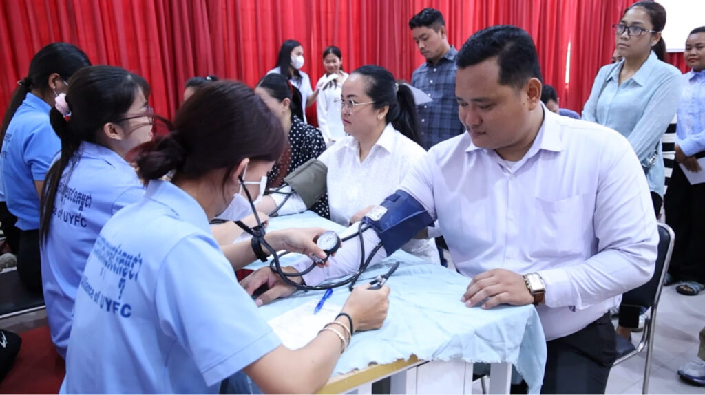 សូមជម្រាបថា កម្មវិធីពិនិត្យសុខភាពប្រចាំឆ្នាំនេះមានការចូលរួមគាំទ្រ ដំណើរប្រតិបត្តិការដោយសម្ព័ន្ធគ្រូពេទ្យសហភាព​សហព័ន្ធ​យុវជន​កម្ពុជា(DA-UYFC) ដែលប្រព្រឹត្តទៅរយៈពេលមួយថ្ងៃពេញ នៅ​សាលាភូមិន្ទរដ្ឋបាល ៕