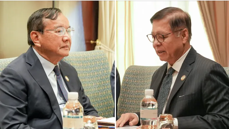 ក្នុងឱកាសអញ្ជើញចូលរួមកិច្ចប្រជុំរដ្ឋមន្រ្តីការបរទេសអាស៊ាន-សហភាពអឺរ៉ុប ឯកឧត្តមឧបនាយករដ្ឋមន្រ្តី ប្រាក់ សុខុន រដ្ឋមន្រ្តីការបរទេស និងសហប្រតិបត្តិការអន្តរជាតិ នៅថ្ងៃទី២៧ ខែមេសា ឆ្នាំ២០២៦ បានជួបទ្វេភាគីជាមួយឯកឧត្តម Sihasak Phuangketkeow ឧបនាយករដ្ឋមន្រ្តី រដ្ឋមន្រ្តីការបរទេស នៃព្រះរាជាណាចក្រថៃ។ ភាគីទាំងពីរបានពិភាក្សាត្រង់ទៅត្រង់មកលើស្ថានភាពព្រំដែន រួមទាំងវិធានការកសាងទំនុកចិត្តនានា និងលើទិដ្ឋភាពដ៏ទូលំទូលាយនៃទំនាក់ទំនងការទូតរវាងប្រទេសទាំងពីរ។