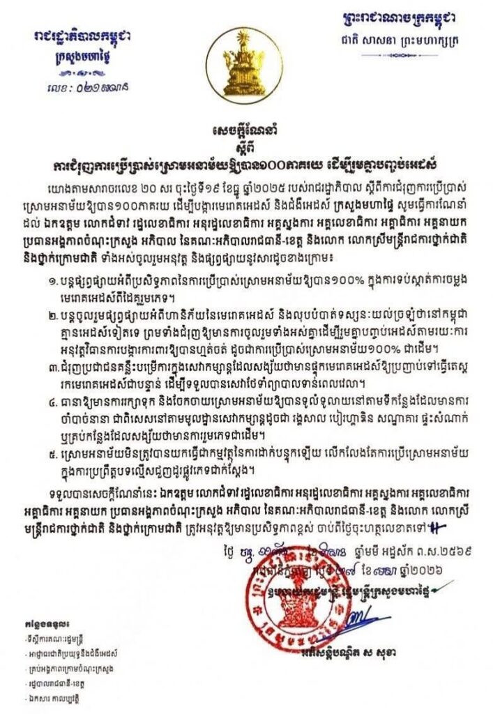 ក្នុងសារាចរថ្មីមួយចុះថ្ងៃទី២៧មេសា ក្រសួងមហាផ្ទៃបានណែនាំដល់មន្ត្រីរាជការគ្រប់លំដាប់ថ្នាក់ចំណុះឱ្យក្រសួង ត្រូវបន្តផ្សព្វផ្សាយអំពីប្រសិទ្ធភាពនៃការប្រើប្រាស់ស្រោមអនាម័យឱ្យបាន១០០% ក្នុងការទប់ស្កាត់ការចម្លងមេរោគអេដស៍ពីដៃគូរួមភេទ។