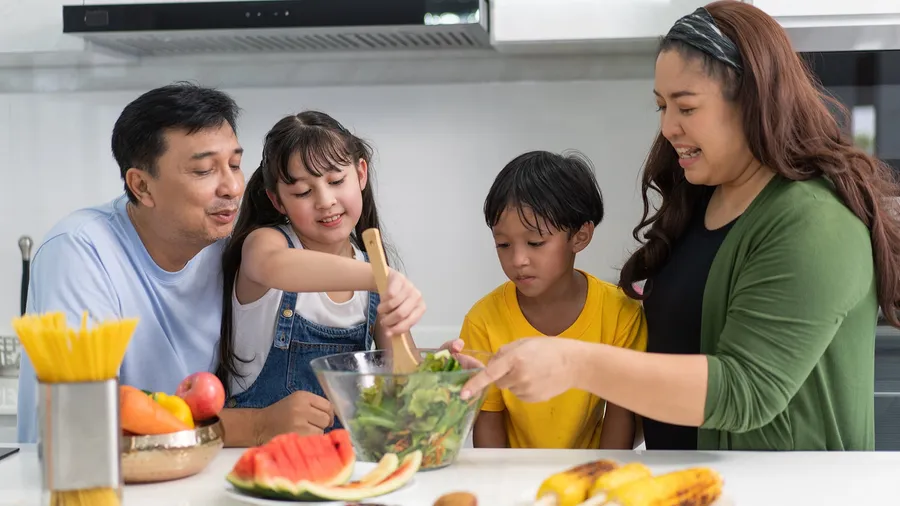 ១. រៀបចំផែនការអាហារសុខភាពរួមគ្នា ៖ ការរៀបចំផែនការអាហារទុកជាមុន គឺជាចំណុចចាប់ផ្តើមដ៏ល្អបំផុត។ អ្នកគួរលើកទឹកចិត្តឱ្យសមាជិកគ្រួសារម្នាក់ៗចែករំលែកមុខម្ហូបដែលពួកគេចូលចិត្ត ឬជួយជ្រើសរើសបន្លែផ្លែឈើដែលផ្តល់ជីវជាតិ។ អ្នកអាចនាំគ្រួសារទៅផ្សារជាមួយគ្នា ហើយឱ្យម្នាក់ៗជ្រើសរើសបន្លែ ឬផ្លែឈើមួយមុខដែលពួកគេចង់ញ៉ាំ ដើម្បីយកមកចម្អិនជាមុខម្ហូបថ្មីប្រចាំសប្តាហ៍។