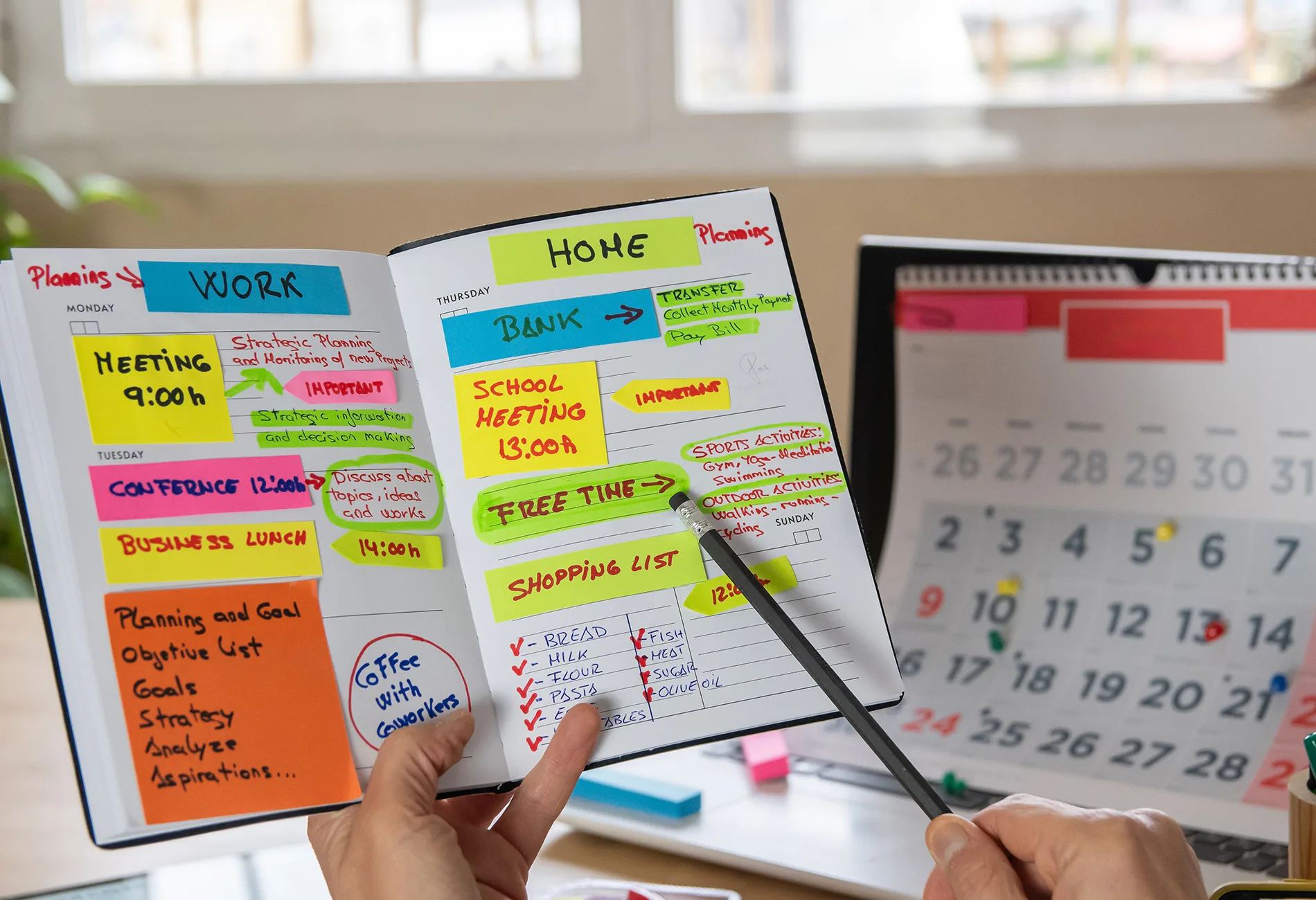 ការមានផែនការច្បាស់លាស់ជួយកាត់បន្ថយភាពតានតឹង នៃ “ខួរក្បាល”។ ការចំណាយពេលប្រហែល ៦០ ទៅ ៩០ នាទីនៅថ្ងៃចុងសប្តាហ៍ ដើម្បីកំណត់កាលវិភាគក្នុង App ឬសៀវភៅកំណត់ត្រា នឹងជួយឱ្យអ្នកដឹងច្បាស់ថាត្រូវធ្វើអ្វី និងពេលណា ដែលធ្វើឱ្យការផ្ដោតអារម្មណ៍កាន់តែមានប្រសិទ្ធភាព។