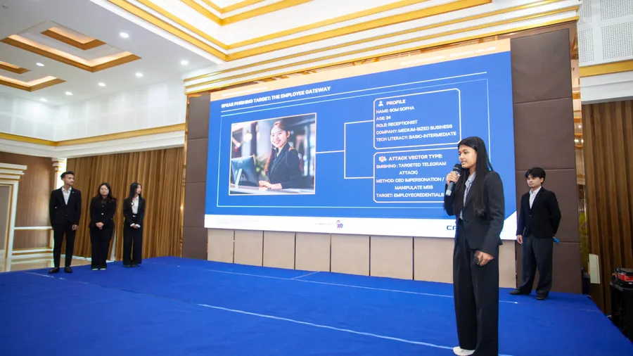 កញ្ញា សំណាង សុខគីនីន ជានិស្សិតឆ្នាំទី៣ ជំនាញសុវត្ថិភាពបណ្តាញ នៃបណ្ឌិត្យសភាបច្ចេកវិទ្យាឌីជីថលកម្ពុជា