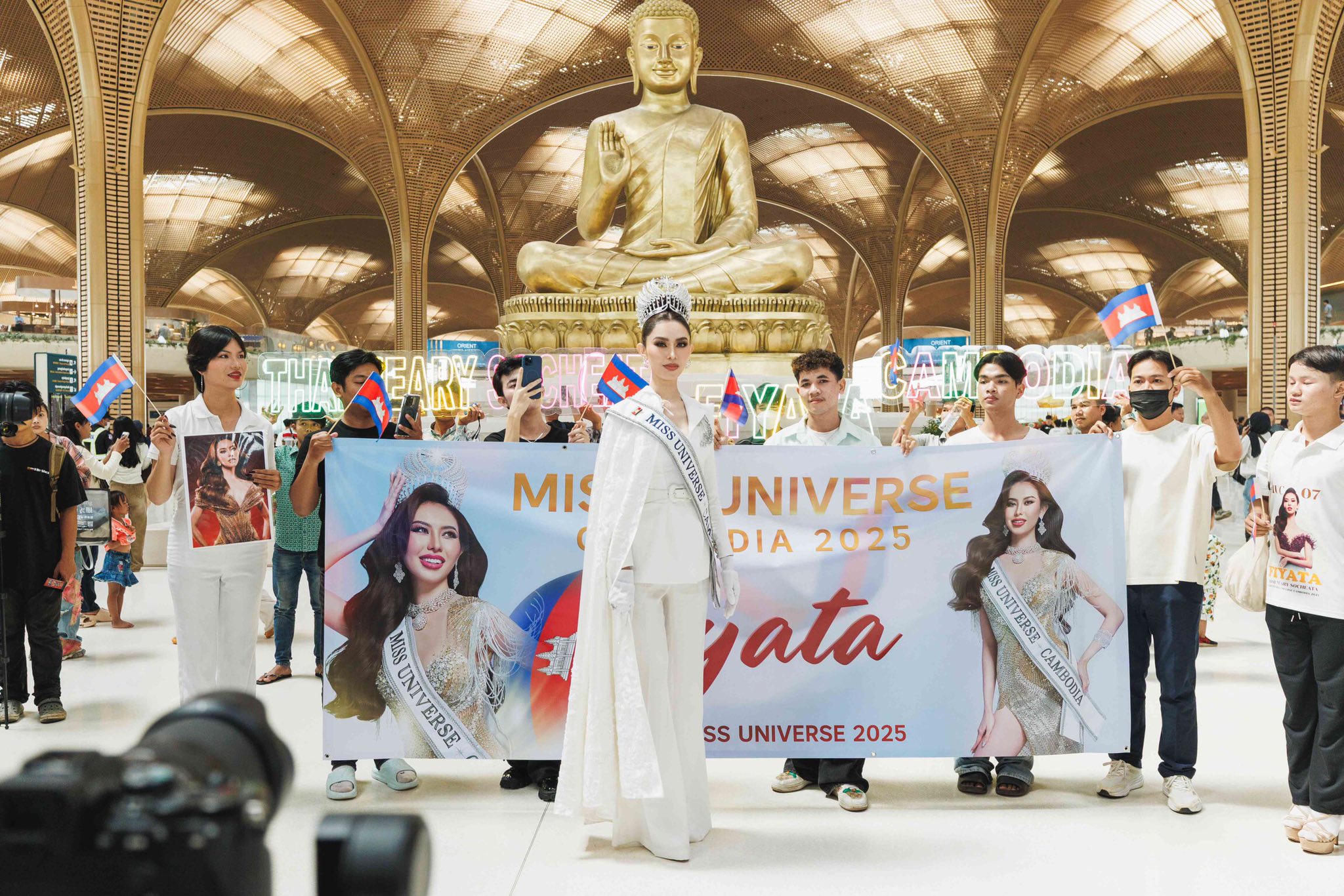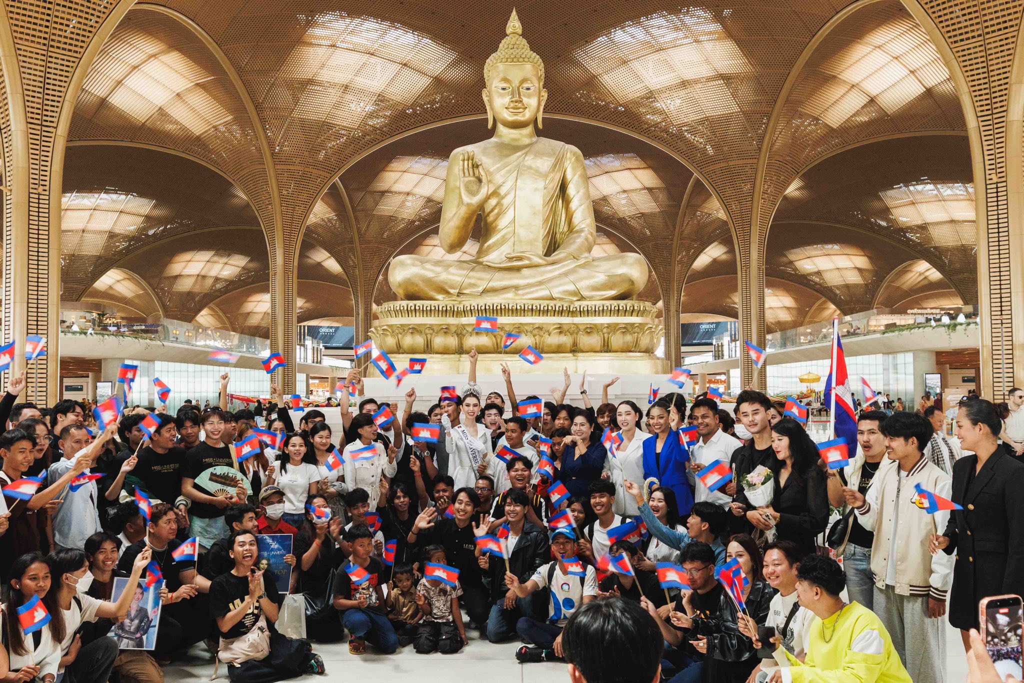 លេច​វត្តមានលំដាប់​រង​ទី​២ នៃ Miss Universe Cambodia 2025 ពេជ្រ វត្តីសារ៉ាវឌី្ឍ ក្នុង​ចំណោម​បណ្ដា​អ្នក​គាំទ្រ​ជា​ច្រើន​នៅ​អាកាសយានដ្ឋាន​តេជោ​សន្តិភាព ក្នុង​ការ​ជូន​ដំណើរ ថៃ នារីសុជាតា ទៅ​កាន់​ប្រទេស​ថៃ​ដើម្បី​ចូលរួម​ប្រកួត Miss Universe 2025 ។