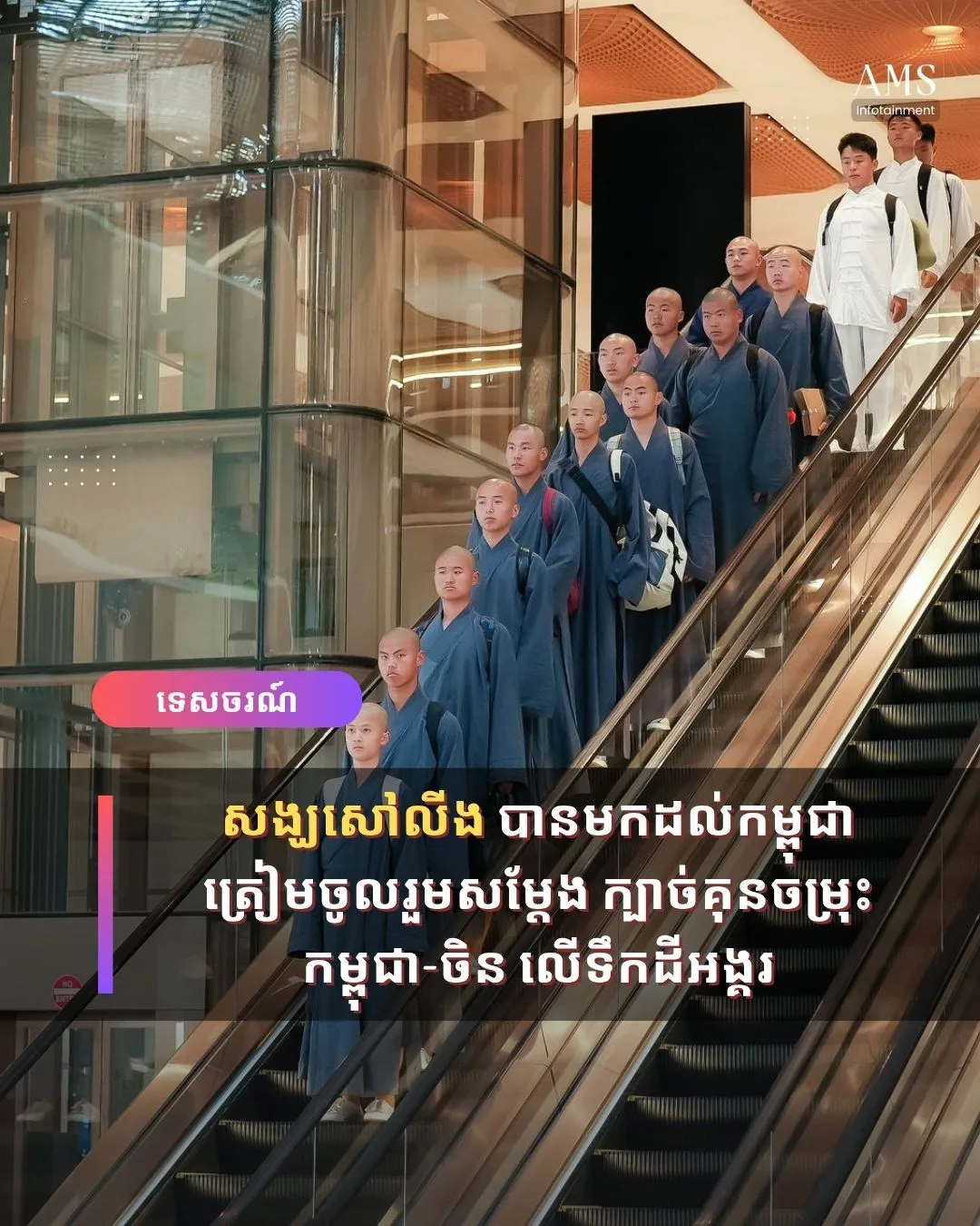 សង្ឃសៅលីង បានមកដល់កម្ពុជាត្រៀមចូលរួមសម្ដែង ក្បាច់គុនចម្រុះ កម្ពុជា-ចិន លើទឹកដីអង្គរ | APSARA MEDIA SERVICES
