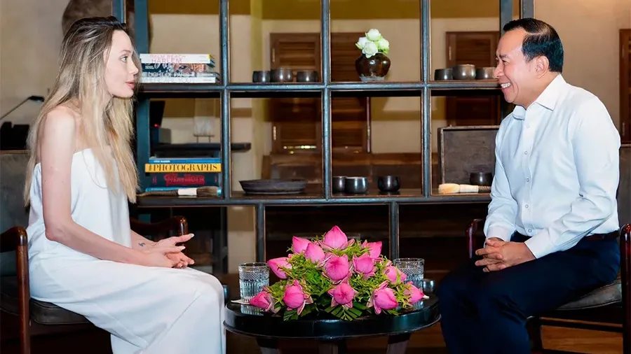 ក្នុង​ជំនួប​រវាង​ថ្នាក់​ដឹកនាំ​ក្រសួង​ទេសចរណ៍ ជាមួយ​តារា​ស្រី​វ័យ ៥០ ឆ្នាំ​ធ្វើ​ឡើង​នៅ​ខេត្ត​សៀមរាប។ រដ្ឋមន្ត្រី​ក្រសួង​ទេសចរណ៍ បាន​ជួប​ពិភាក្សា​ការងារ​ជាមួយ Angelina តារា​ភាពយន្ត​ហូលីវូដ​ដ៏​ល្បីល្បាញ និង​ជា​ប្រធាន​មូលនិធិ MJP ដែល​បាន​​បំពេញ​បេសកកម្ម​មនុស្សធម៌​នៅ​កម្ពុជា និង​នៅ​តាម​បណ្ដា​ប្រទេស​ជាច្រើន​ទៀត​នៅ​លើ​ពិភពលោក។