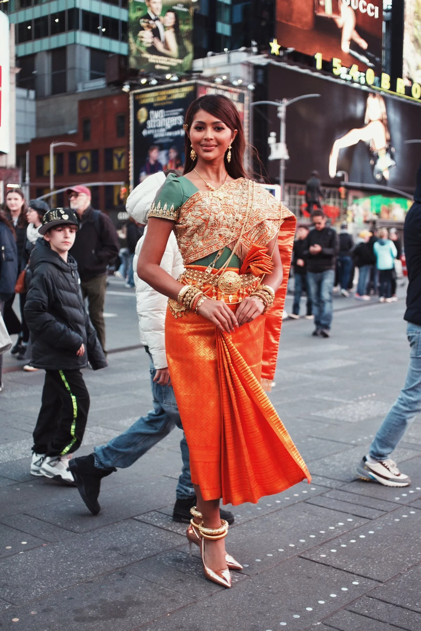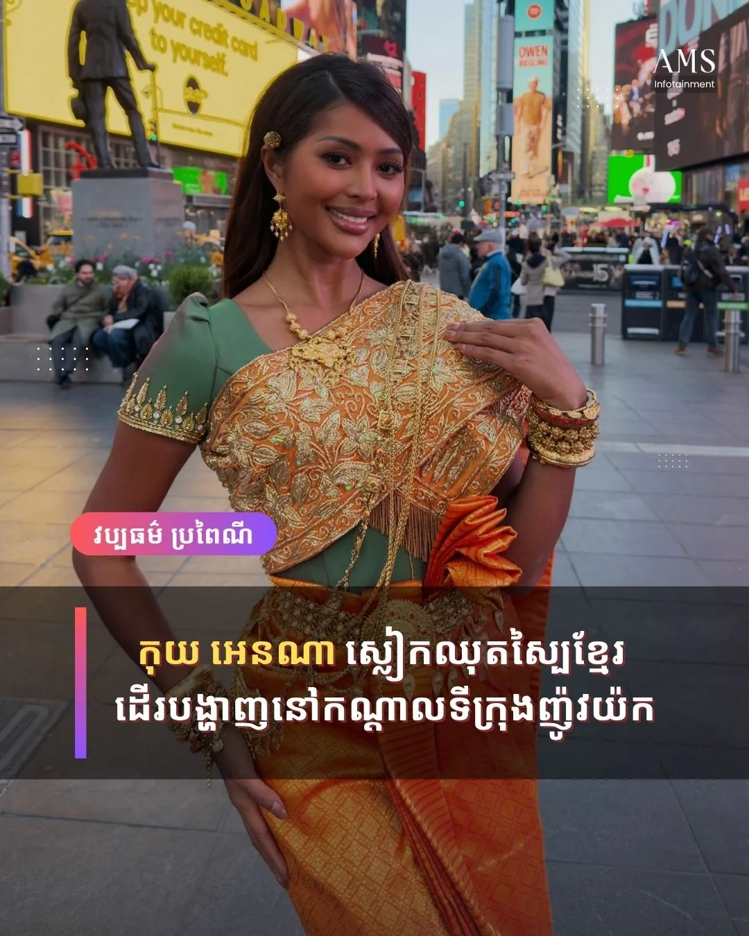កុយ អេនណា ស្លៀកឈុតស្បៃខ្មែរ ដើរបង្ហាញនៅកណ្ដាលទីក្រុងញ៉ូវយ៉ក