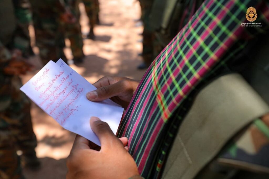 វីរកងទ័ពដែលកំពុងឈរជើងការពារ នៅទិសខេត្តព្រះវិហារ វី រស្មី បានទទួលសំបុត្រដែលសរសេរដោយផ្ទាល់ពីលោកជំទាវបណ្ឌិត ពេជ្រ ចន្ទមុន្នី ជូនចំពោះវីរកងទ័ព ដែលកំពុងឈរជើងនៅជួរមុខ ។