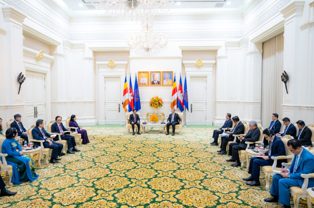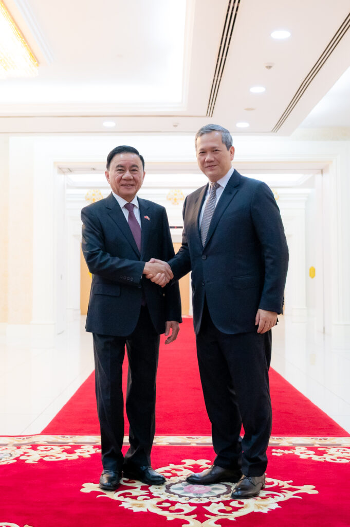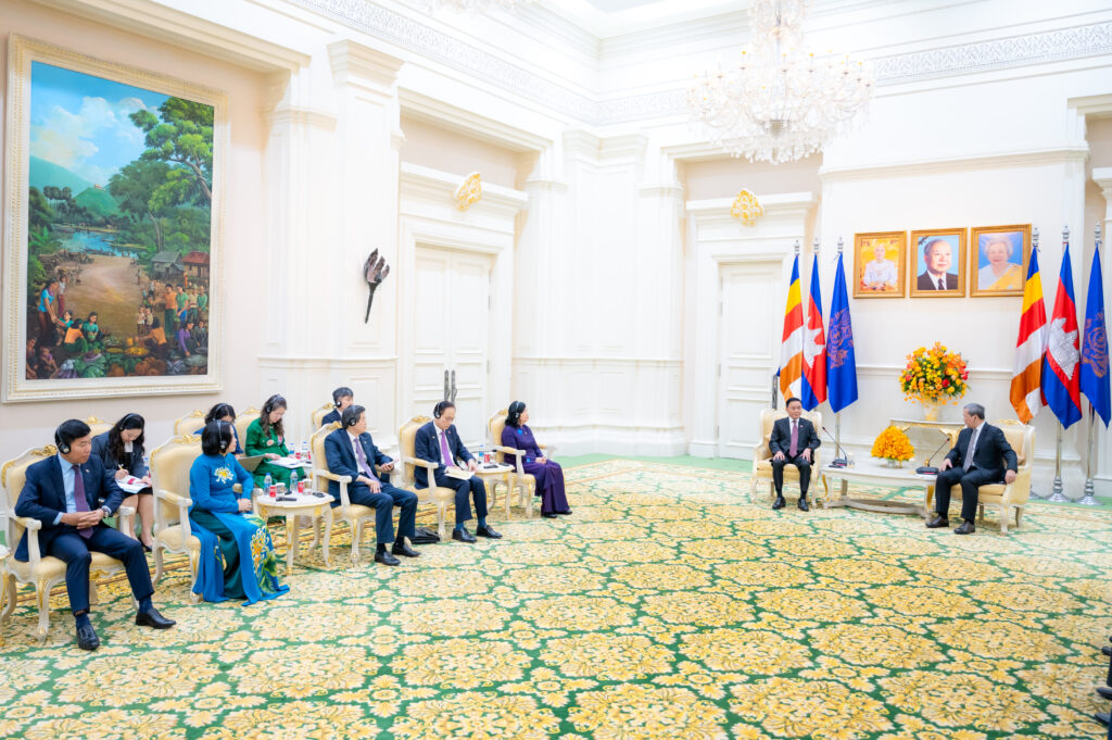 ភ្នំពេញ៖ សម្ដេចមហាបវរធិបតី ហ៊ុន ម៉ាណែត នាយករដ្ឋមន្ត្រីនៃព្រះរាជាណាចក្រកម្ពុជា បានជួបពិភាក្សាការងារជាមួយ ឯកឧត្តម ត្រិន កឹមទូ សមាជិកការិយាល័យនយោបាយ និងជាសមាជិកប្រចាំការគណៈលេខាធិការមជ្ឈិមបក្សកុម្មុយនីស្តវៀតណាម នៅវិមានសន្តិភាព នាព្រឹកថ្ងៃទី១០ ខែមេសា ឆ្នាំ២០២៦ ។